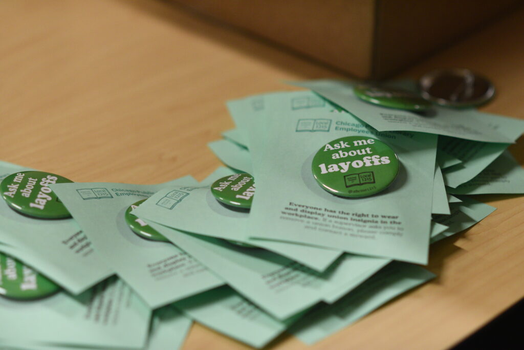 BUTTONS ALERT!! Local 1215 has buttons for staff to wear this budget season. The message is “Ask Me About Layoffs”– read more below on how you can respond, and how to speak to your own alder.